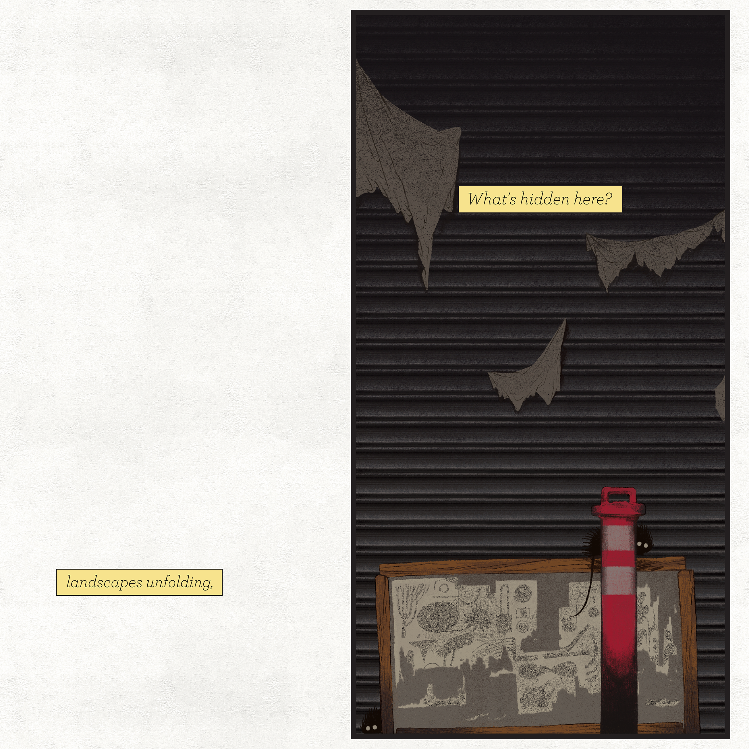 My thesis project “One, two, three, four, five, six, seven; All good children go to Heaven” is an experimental narrative work of abstract comics across 3 walls, focusing on the travel in the liminal space between life and death.